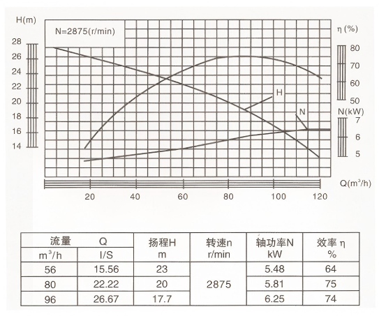 175QJ20Rated flow (m³/h) :
