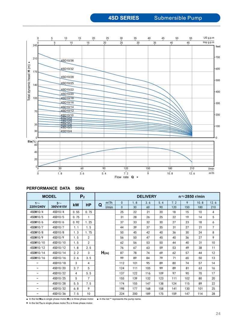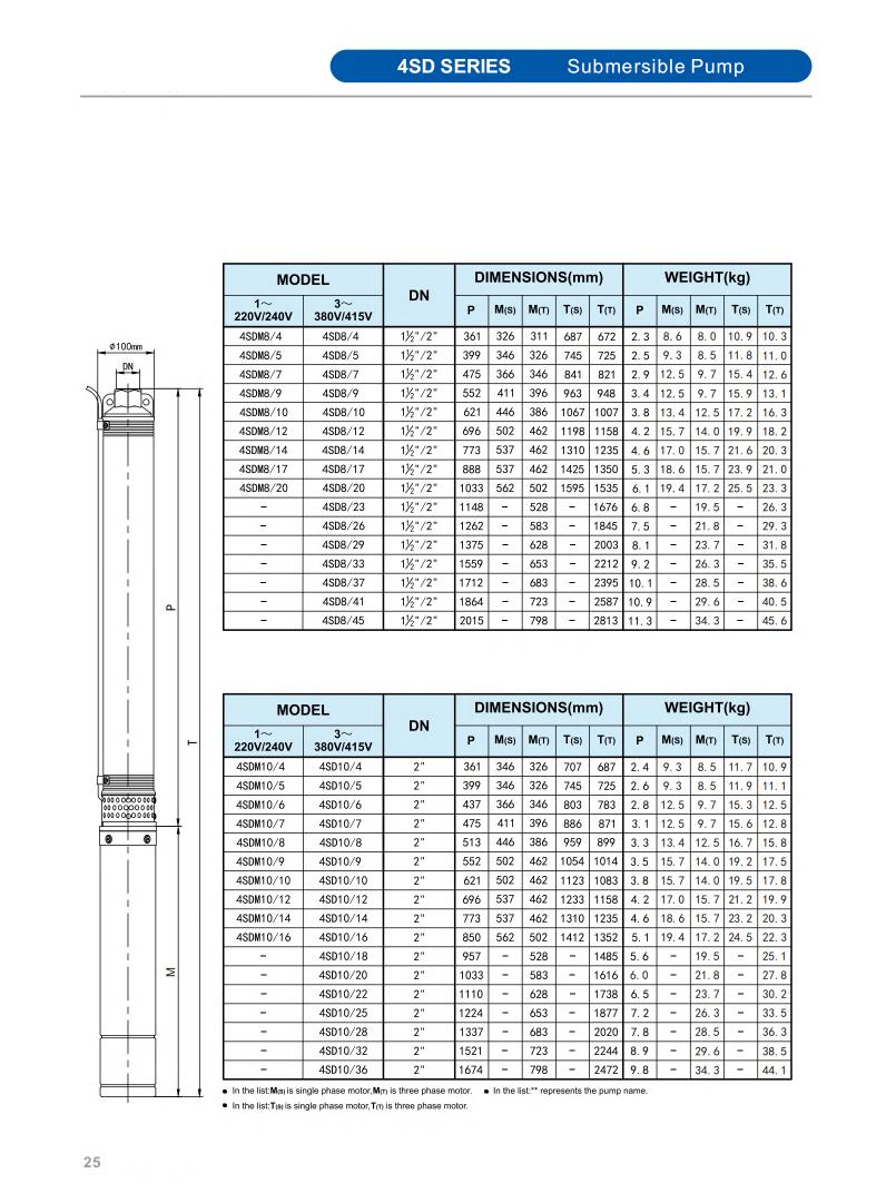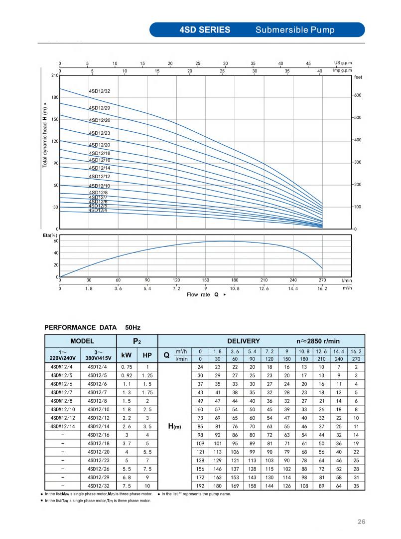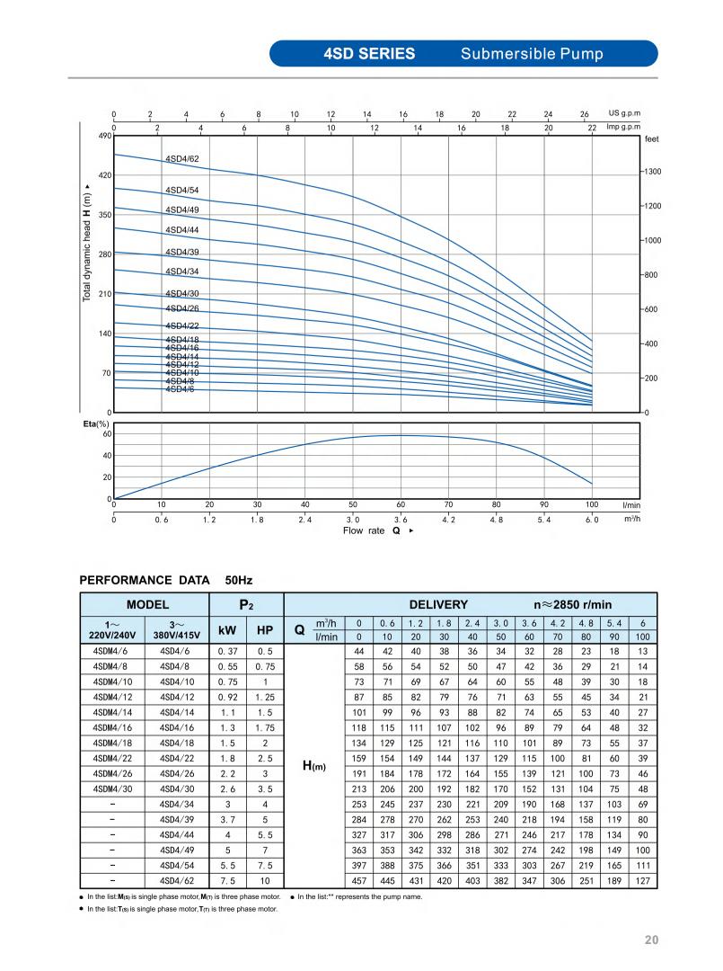 Minimum well diameter : 2.5"/3"/3.5"/4"/5"/6"