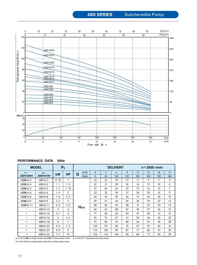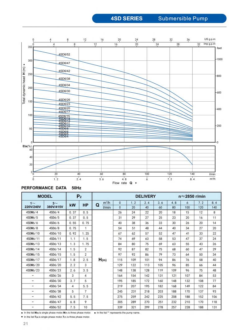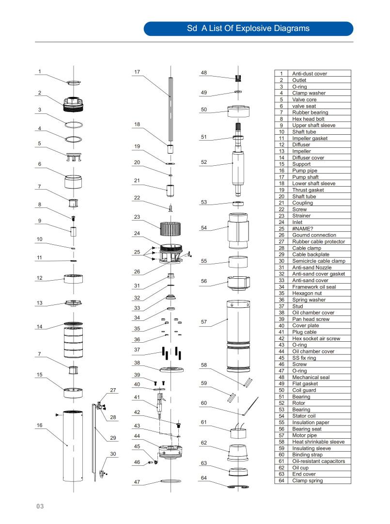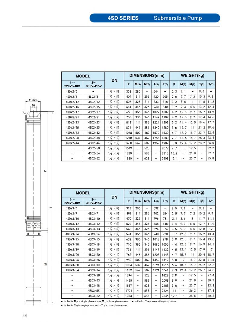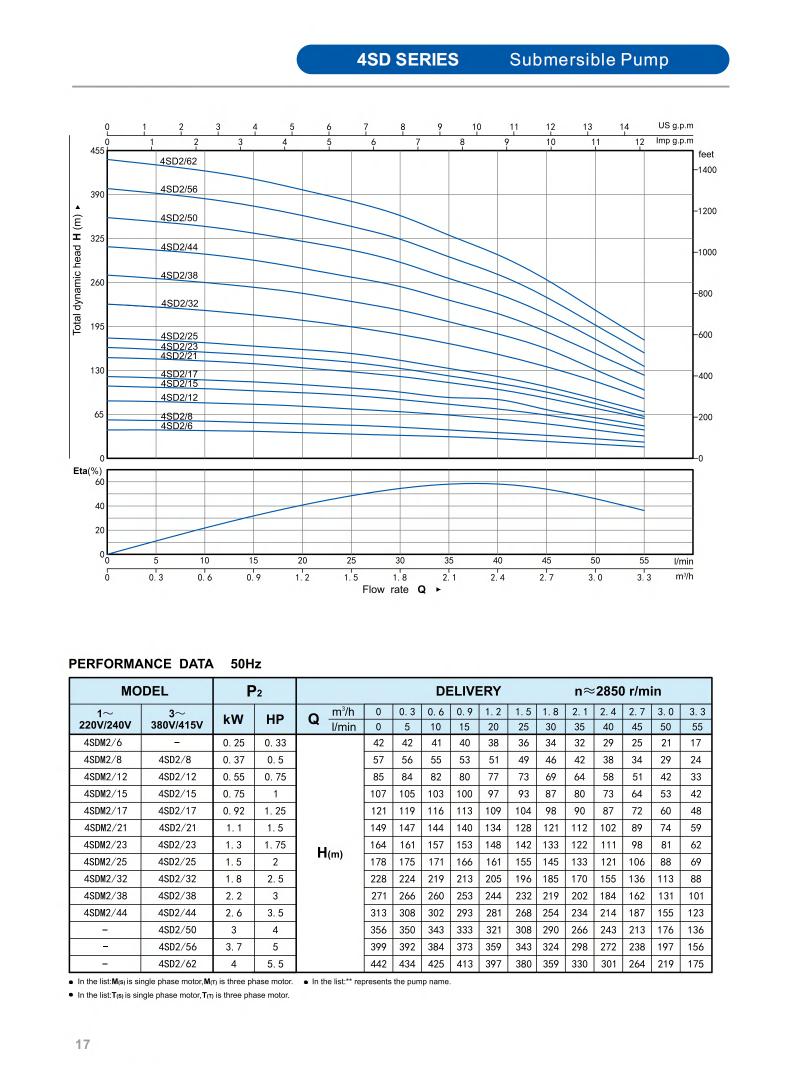 Minimum well diameter : 2.5"/3"/3.5"/4"/5"/6"
