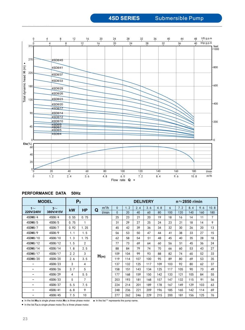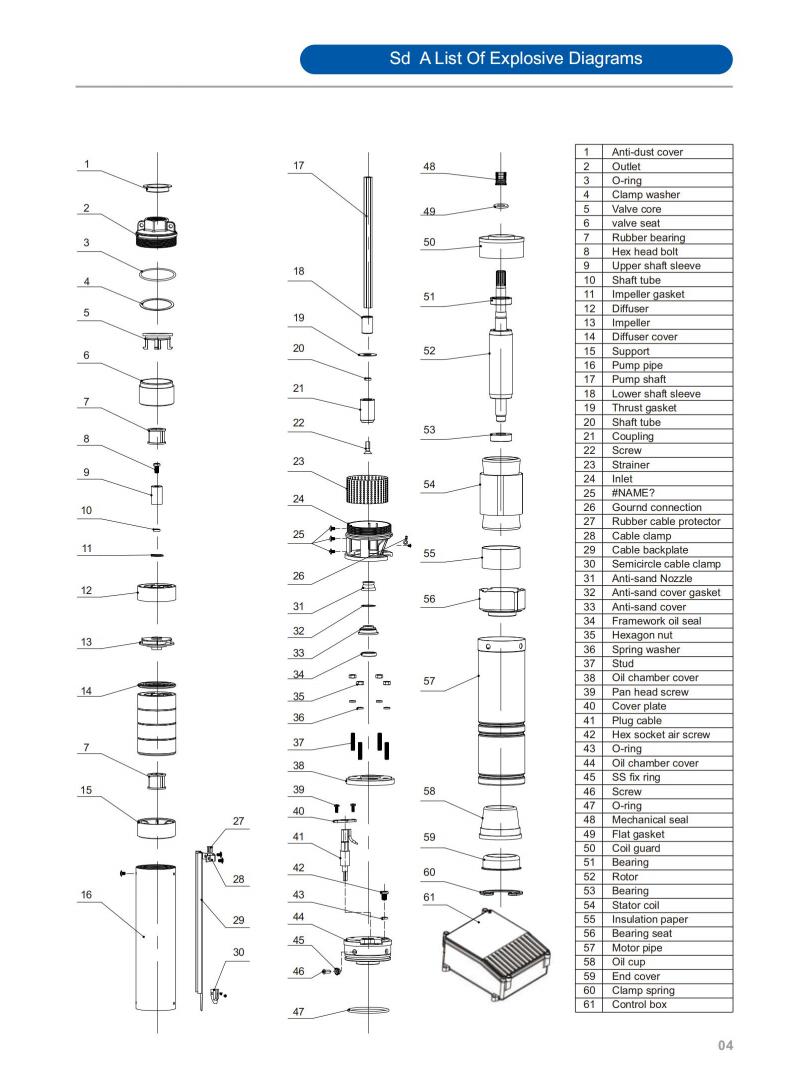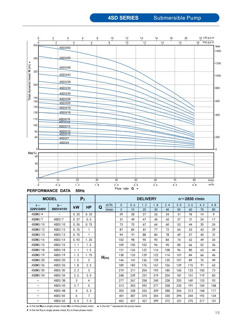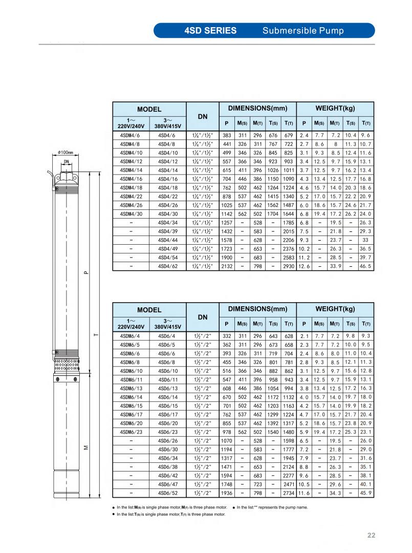 SD submersible water Pump for weep well is a high-efficiency fluid transfer equipment specially tailored for deep well water extraction scenarios. It adopts an integrated submersible structure design, with pump casing made of AISI 304/201 stainless steel and impeller made of plastic. POM.