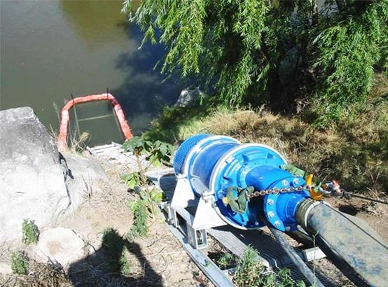 To withstand the high pressure, the main pumping line is installed at the pump outlet and the pump is placed in a hopper by the river to separate solid objects such as leaves when pumping water.