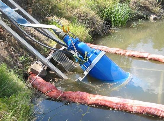 The pump is mounted on a 30-meter-long inclined bank to facilitate lifting.